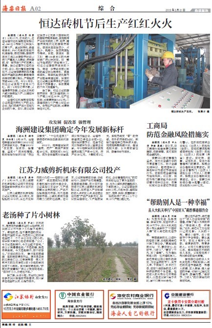我縣主流媒體《海安日?qǐng)?bào)》也做了相關(guān)報(bào)道。