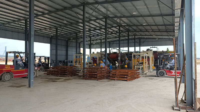 發(fā)貨不是終點(diǎn),確保設(shè)備順利投產(chǎn)并持續(xù)穩(wěn)定運(yùn)行才是我們的目標(biāo)。根據(jù)和客戶溝通的時(shí)間節(jié)點(diǎn),2023年8月份我司派售后服務(wù)部技術(shù)人員前往印尼現(xiàn)場(chǎng)進(jìn)行指導(dǎo)安裝調(diào)試,通過和業(yè)主的緊密配合,奮戰(zhàn)30天,兩條QT6-15全自動(dòng)砌塊機(jī),全自動(dòng)離線碼垛機(jī),全自動(dòng)打包機(jī)安裝完成,順利出磚,碼垛,打包。在對(duì)客戶操作人員進(jìn)行培訓(xùn)又穩(wěn)定運(yùn)行30天后,得到客戶的確認(rèn)和肯定,我司技術(shù)人員返回國(guó)內(nèi)。