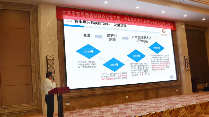 大會(huì)第二階段就進(jìn)一步推進(jìn)行業(yè)綠色發(fā)展進(jìn)行了交流,徐州振豐新型墻體材料有限公司技術(shù)總監(jiān)崔皓介紹了徐州振豐公司煤矸石制磚項(xiàng)目在產(chǎn)業(yè)升級及循環(huán)經(jīng)濟(jì)產(chǎn)業(yè)鏈延伸探索方面的經(jīng)驗(yàn),該公司年產(chǎn)7.2億塊煤矸石隧道窯燒結(jié)磚協(xié)同處置項(xiàng)目被列入徐州市“無廢城市”試點(diǎn)示范項(xiàng)目;新華盛節(jié)能科技有限公司副總經(jīng)理陳志明以“企業(yè)綠色轉(zhuǎn)型發(fā)展介紹”為題,介紹了該公司的基本情況及研發(fā)的新產(chǎn)品免燒自保溫多孔砌塊;南通恒達(dá)機(jī)械制造有限公司總工程師于銀龍以“創(chuàng)新發(fā)展,恒達(dá)永遠(yuǎn)在路上”為題,介紹了南通恒達(dá)移動(dòng)式隧道窯、打包機(jī)和碼垛機(jī)等產(chǎn)品的技術(shù)優(yōu)點(diǎn)以及客戶案例。三位嘉賓的報(bào)告贏得了與會(huì)代表們的熱烈掌聲。